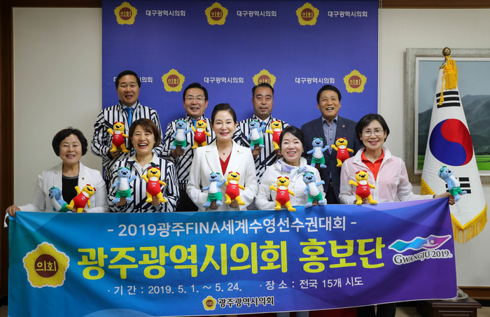 대구광역시의회 배지숙 의장은 “올림픽, 월드컵과 함께 세계 3대 매머드 스포츠 이벤트인 세계수영선수권대회의 성공을 위해서는 전 지자체의 적극적인 참여와 협조가 필수적”이라며, “대구광역시의회에서도 대회 홍보 및 입장권 구매, 관람 권유 등에 적극적으로 협조하겠다.”고 말했다.
