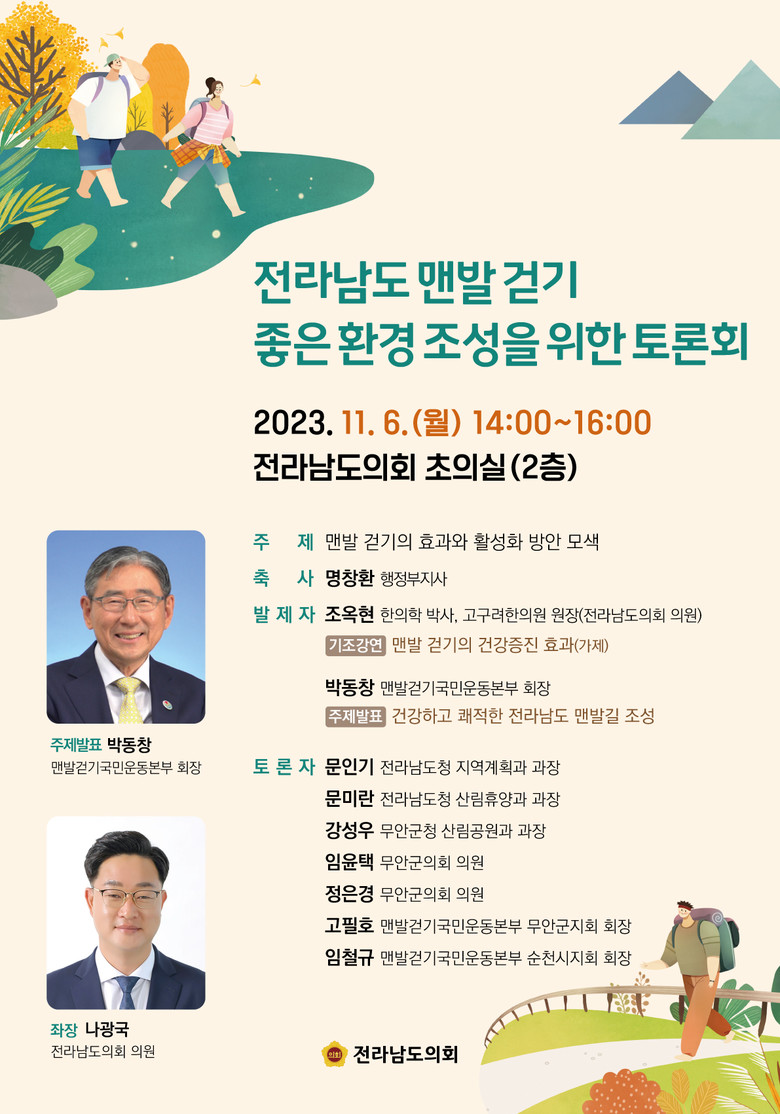토론회 좌장을 맡은 나광국 의원은 “전국적인 맨발 걷기 열풍의 원인을 분석하고, 맨발 걷기 활성화와 저변 확대를 위해 관계자 의견을 수렴하고 정책을 마련하는 시간을 갖고자 한다”며 토론회 개최 배경을 설명했다.