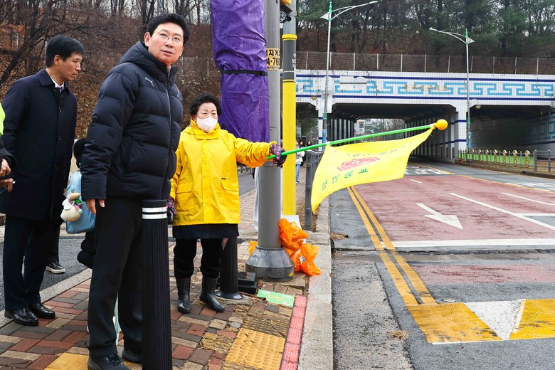 이 시장은 학생들이 안전하게 횡단보도를 건널 수 있도록 돕는 교통지도 봉사에 참여한 후 학교 관계자, 학부모들과 청덕초등학교 학생들이 이용하는 통학로를 살펴보고, 안전한 환경을 조성하기 위한 방안을 논의했다.