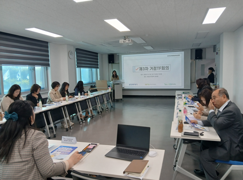 | ▲ 전국 최초 민원 전담부서 ‘행정종합관찰관이 다함께돌봄센터 회의에서 생활불편 도와드림 QR 제도를 홍보하고 있다. |