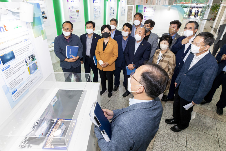 예결위원들은 현장을 둘러보면서 대기업의 수도권 및 해외 이전과 그에 따른 중소기업 붕괴, 산단 노후화 등으로 위기에 직면한 구미산단의 어려움과 성장 동력 마련의 필요성에 공감하고 사업추진 애로사항 청취 및 해결방안 등을 논의하면서 구미산단의 성장 전환.고도화와 중소기업 자생력 확보 방안 마련에 최선을 다해줄 것을 주문했다.