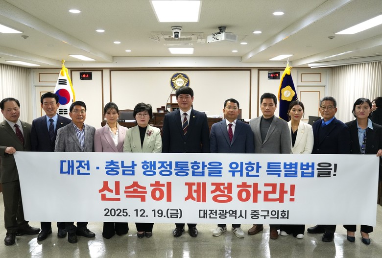 대전광역시 중구의회는 김석환 의원의 대표발의를 시작으로, 대전·충남 시민과 함께 특별법 통과를 위한 요구와 행동을 지속해 나갈 계획이다.