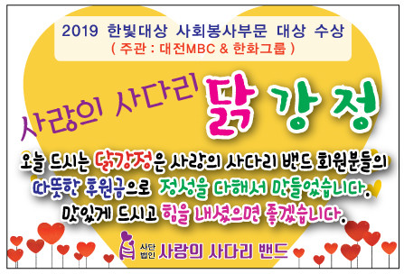 현재 9,200명으로 구성된 사랑의 사다리 밴드는 지방자치단체의 보조금 지원없이 회원들의 후원금으로 매주 2회 대전시 지역아동센터에 닭강정 봉사로 따뜻한 사랑 나눔을 펼치고 있다.