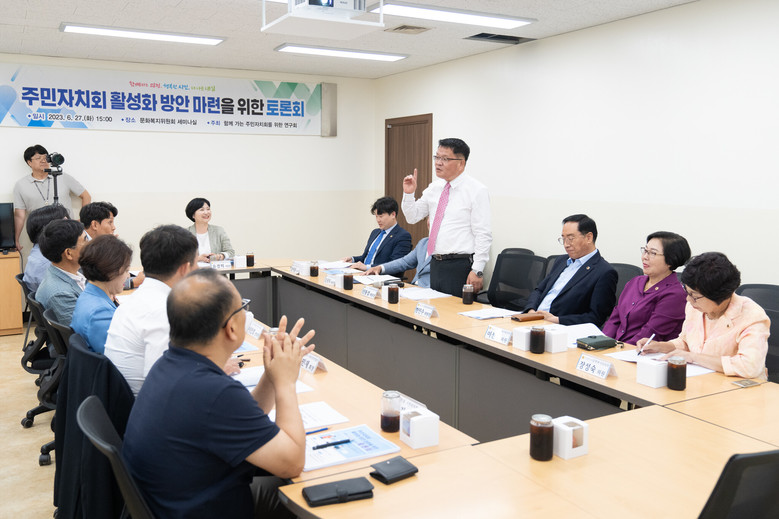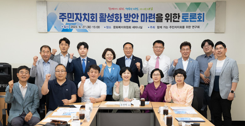 이날 토론회에는 김종득 문화복지위원장, 신동섭 행정안전위원장, 한민수 의회운영위원장, 장성숙·이선옥 의원 등과 주민자치회 관계자들이 참석했다.