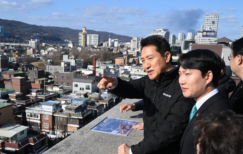 | ▲ 27일(금) 송파구 풍납동 모아타운 사업지를 찾은 오세훈 서울시장이 대상지 현황을 살펴보고 있다. |