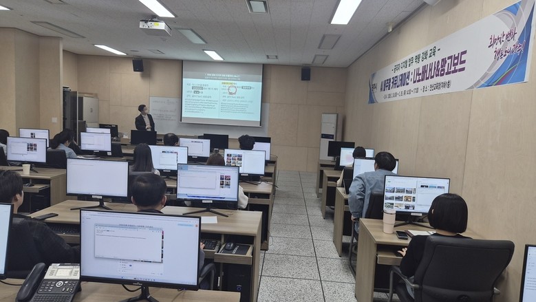 교육은 에듀마이스터 김영진 대표를 초청해 개인 컴퓨터 실습 중심의 밀착형 강의로 운영됐다. 주요 내용은 ‘나노바나나’를 활용한 맞춤형 사진 제작과 ‘망고보드’를 활용한 동영상 제작 실습 등으로 구성돼 실무 적용 가능성을 높였다.