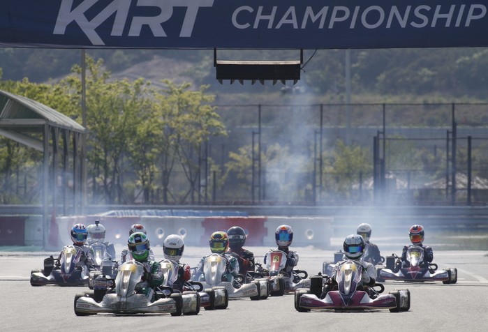 [사진설명] 2019 카트 챔피언십 2라운드 선수부 경기에 참가한 드라이버들이 연기를 내뿜으며 레이스를 시작하고 있다.