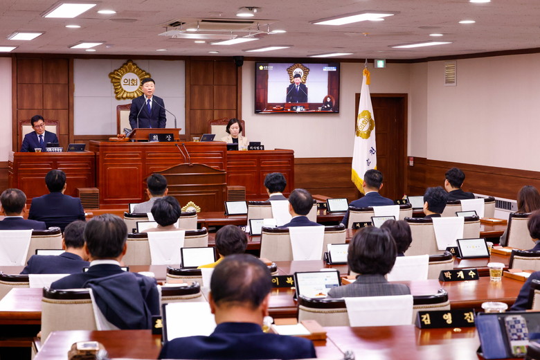 정병회 의장은 개회사를 통해 “비회기 중에도 순천대 의대 유치 홍보와 1회용품 사용 줄이기 간담회 등 열정적인 의정활동을 펼쳐주신 동료 의원님들께 감사드린다”며, “이번 임시회에서 상정된 보고 및 일반 안건을 시민의 마음으로 세심하게 살펴 주시길 바란다”고 당부했다.
