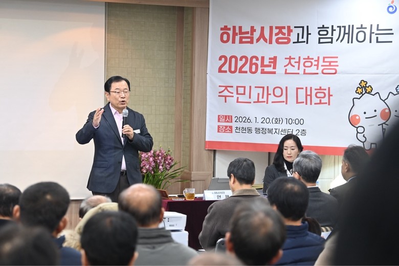 [하남시 세계타임즈=송민수 기자] 이현재 하남시장은 20일 감일동 행정복지센터에서 열린 ‘주민과의 대화’에서 “방아다리길 연결도로 개통과 연계한 버스 노선 개편 및 생활 SOC 확충을 통해 감일신도시 주민들의 정주 여건을 개선하겠다”라고 밝혔다.
