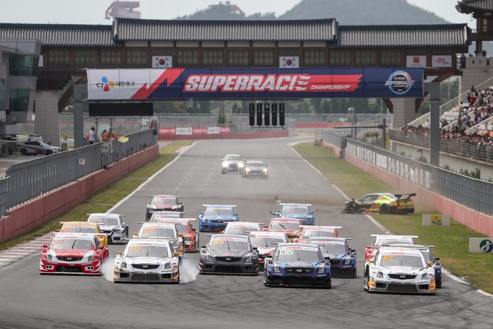 [사진설명]ASA 6000 클래스 출전 차량들이 16일 전남 영암군의 코리아인터내셔널서킷에서 열린 2019 CJ대한통운 슈퍼레이스 챔피언십 3라운드 결승전에서 힘차게 스타트하고 있다.