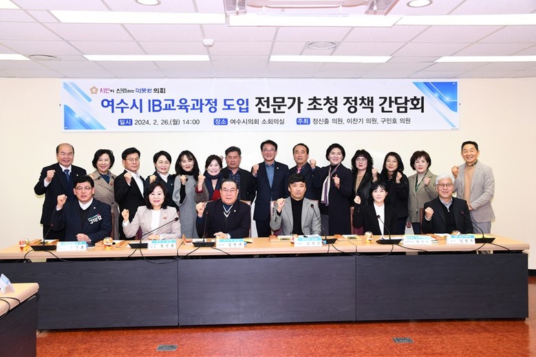 [여수시 세계타임즈=우덕현 기자] 여수시의회(의장 김영규)는 26일 여수시의회 소회의실에서 “여수시 IB(국제 바칼로레아, International Baccalaureate)프로그램 도입 전문가 초청 정책 간담회”를 개최했다.