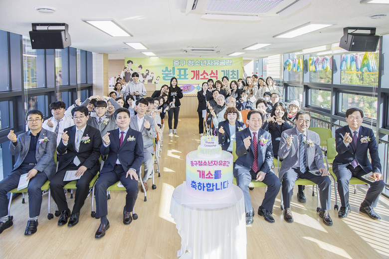 중구청소년수련관(이주희 관장)의 주최로 개최된 이날 행사에는 중구의회 강후공 의장을 비롯해 정동준, 이종호, 윤효화, 손은비 의원이 참석하여 중구 청소년자유공간의 개소를 축하하며, 관내 학교인 인천반도체고등학교 학생들을 응원하는 시간을 가졌다. 쉼과 배움이 있는 공간인 중구 청소년자유공간 ‘쉼표“는 율목 커뮤니티센터 4층에 조성되었으며, 청소년들이 자유롭게 자신을 표현하고 발전할 수 있는 안전한 문화 및 소통 공간을 제공하여, 청소년들의 건강한 성장과 발전을 촉진하고 미래를 준비하는 데 중요한 역할을 할 것으로 기대된다.