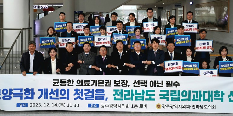 한편, 광주광역시의회는 지난 10월 ‘전남도 의과대학 신설 촉구 건의안’을 채택하고 의대 신설을 요구하는 움직임에 동참한 바 있으며, 최근 전남지역 여야 4당 위원장들은 전남도의회의 제안으로 공동 협약을 맺고 전남권 의대 신설을 위한 대안 도출에 적극 협력하기로 해 귀추가 주목된다.