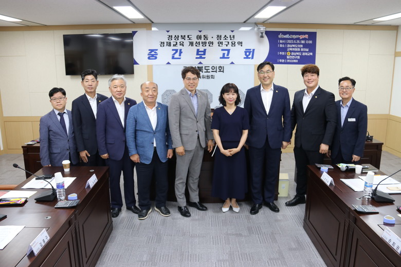[경북 세계타임즈=한성국 기자] 경북도의회 「경상북도 경제교육 발전연구회」(대표 윤종호 의원)는 26일(월) 도의회 회의실에서 “경상북도 아동.청소년 경제교육 개선방안 연구 용역” 중간보고회를 개최했다.
