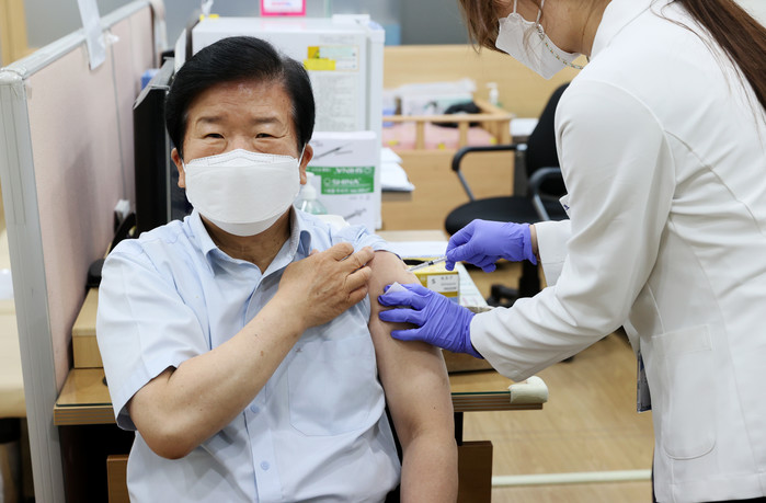 박 의장은 접종 후 “2차 접종까지 끝냈다. (국민 여러분도) 안심하고 맞으시길 바란다”면서 “백신을 맞는 것이 맞지 않는 것보다 자신과 이웃을 보호하는 길”이라고 강조했다.