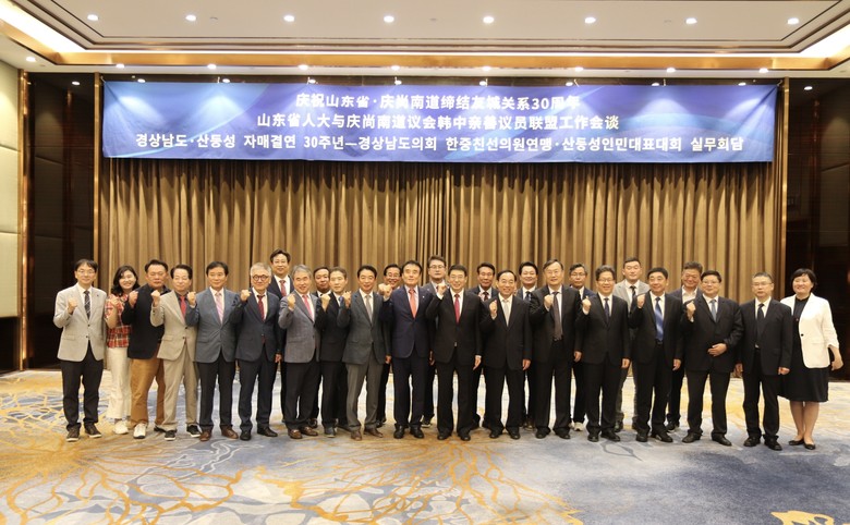 경남도 한중해외친선의원연맹(회장 서희봉)방문단은 산동성 인민대표대회 상무위원회 판화핑(范华平) 부주임과의 간담회를 통해 경상남도와 산동성과의 자매결연 30주년을 맞는 올해는 기념비적인 해로 그간에 양 도-성간 우호를 확인하고 다양한 교류행사를 확대.추진하자는 데에 공감을 표시하였다.