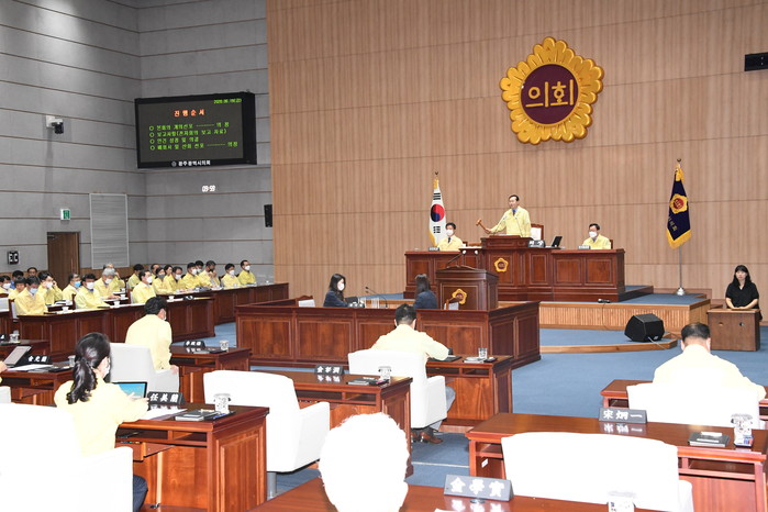 김동찬 의장은 “150만 광주시민의 준엄한 명령으로 지난 2018년 7월에 출범한 제8대 전반기 광주광역시의회가 이번 정례회를 끝으로 2년의 임기를 정리하게 됨에 보람과 아쉬움이 공존한다”며, “우리 광주시의회는 시민의 충실한 대리자로서 지난 2년 간 실시했던 집행부에 대한 견제와 감시활동, 역대 가장 활발한 정책연구와 왕성한 입법활동 등의 귀중한 경험을 노둣돌 삼아 앞으로 2년의 후반기 의회에도 빛고을광주의 도시경쟁력을 좌우할 수많은 난제들의 해결을 위해 의정활동에 성심을 다해나가겠다”고 밝혔다.