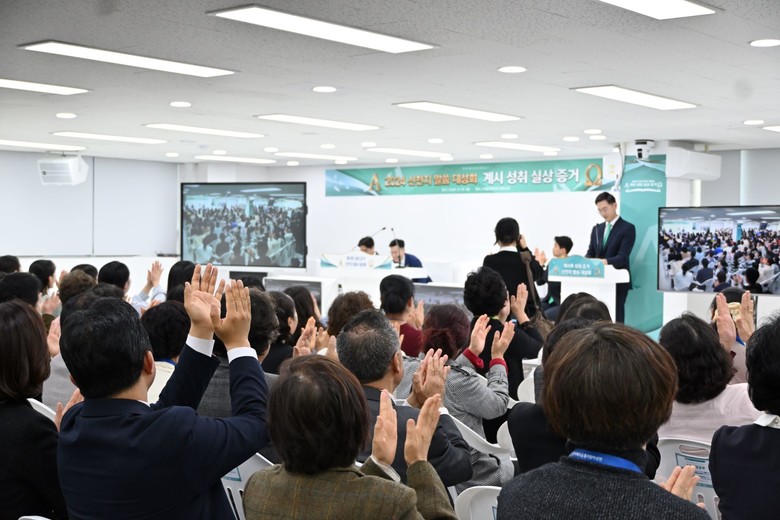 ▲지난 10일 신천지 바돌로매지파가 신천지 광명교회에서 ‘바돌로매지파 계시록 성취 증거 신천지 말씀대성회’를 개최한 가운데 청중들이 환호와 박수로 화답하고 있다. [사진 제공 = 신천지 광명교회]