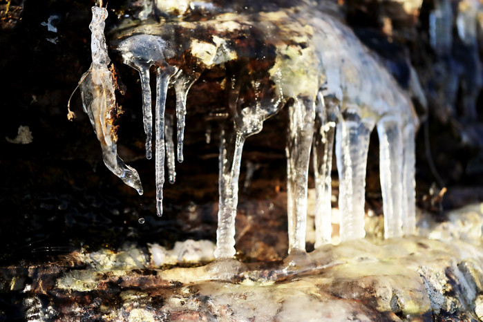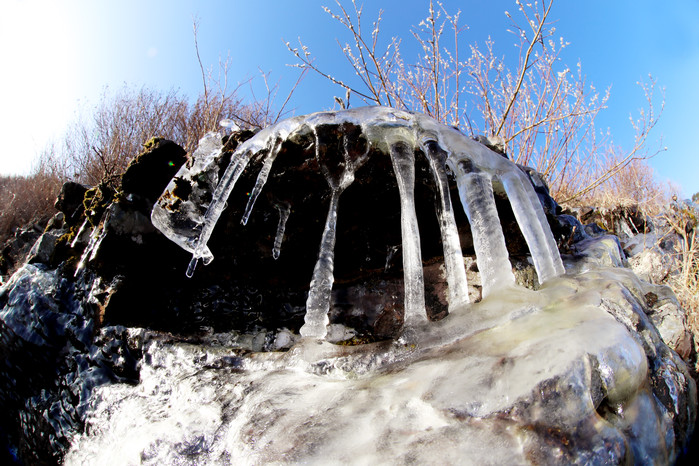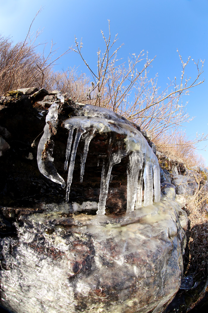 낮에는 따뜻한 기온으로 녹아 없어지고 밤에 다시 고드름이 생겨나고 있어 눈길을 끈다.