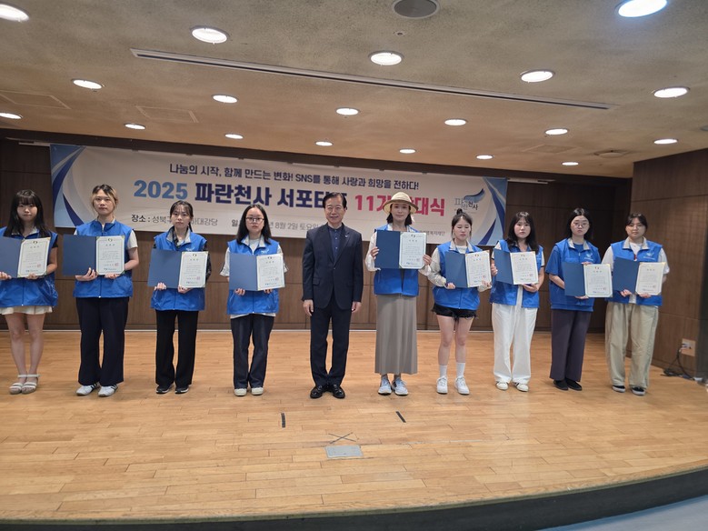 지난 2025년 8월 2일(토) 오전 11시, 서울 성북구청 강당에서 한국새생명복지재단(이사장 송창익)이 주최한 파란천사 서포터즈 11기 발대식이 감동 속에 개최되었다.