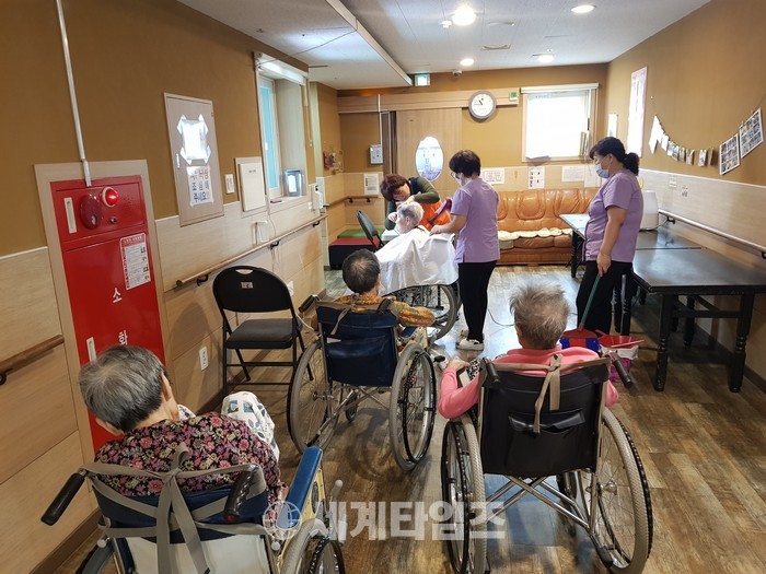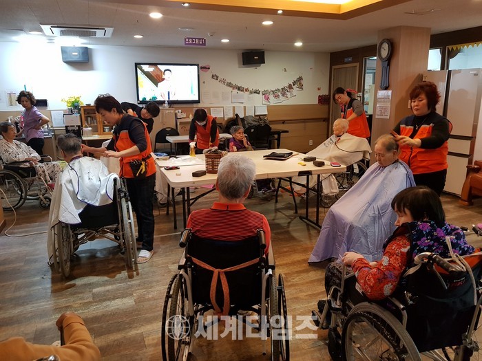 [대전=세계타임즈 이장성 기자] 다양한 봉사활동을 하고 있는 5천명 봉사단체 사랑의 사다리 밴드(리더 이정제)는 6일 오전10시, 대덕구 비래동에 위치한 예사랑실버케어요양원(원장 김숙희)에서 치매 및 와상 어르신들 50분께 미용봉사(회장 김정자)로 사회적 효행을 실천하였다.