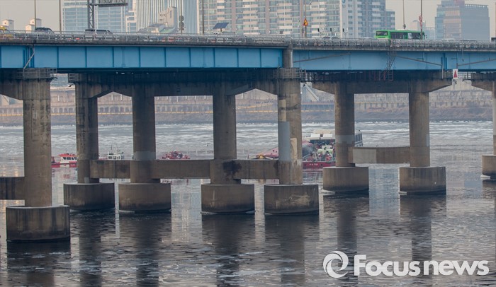 (서울=포커스뉴스) 26일 오후 서울 한강 영동대교 인근을 지나던 한강유람선이 침수, 구조대원들이 구조활동과 견인 작업을 하고 있다.