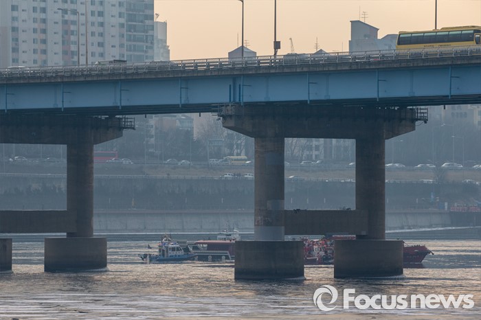 (서울=포커스뉴스) 26일 오후 서울 한강 영동대교 인근을 지나던 한강유람선이 침수, 구조대원들이 구조활동과 견인 작업을 하고 있다.