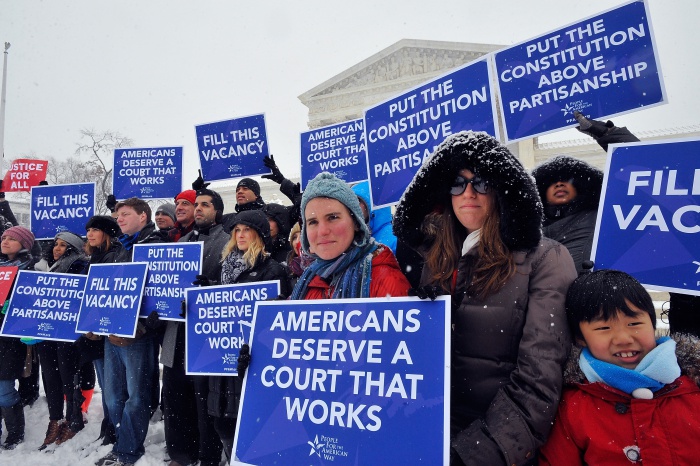 상원에서 큰 표차로 인준된 현역 판사로는 미국 순회항소법원 판사 스리 스리니바산, 재클린 응웬, 제인 켈리 등이 있다.오바마 대통령이 지명할 대법관 후보자를 미국 의회가 공정하게 심사해야 한다고 주장하는 활동가들이 15일(현지시간) 워싱턴의 대법원 건물 앞에서 시위하고 있다.(Photo by Larry French/Getty Images for People For The American Way) 2016.02.17