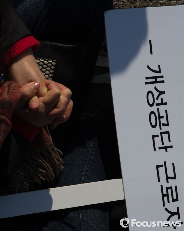 (파주=포커스뉴스) 16일 오후 경기도 파주시 통일대교에서 개성공단 입주기업, 영업기업, 협력기업 등 대표를 비롯한 임직원과 가족들이 공단재가동 및 실질보상을 촉구하며 '개성공단 평화대행진 집회'를 하고 있다.