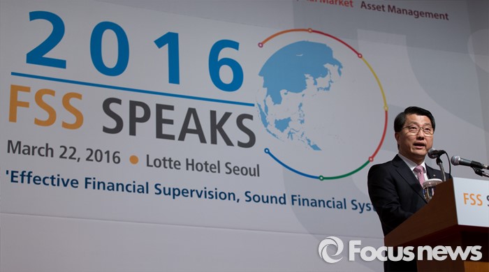 (서울=포커스뉴스) 22일 오전 서울 중구 소공로 롯데호텔에서 진웅섭 금융감독원장이 외국계금융회사 대상 업무설명회 'FSS SPEAKS 2016'에 참석해 기조연설을 하고 있다.