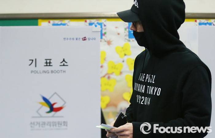(서울=포커스뉴스) 20대 국회의원 선거일인 13일 오전 서울 용산구 한남초등학교에 마련된 투표소에서 배우 박해진이 투표를 하고 있다.
