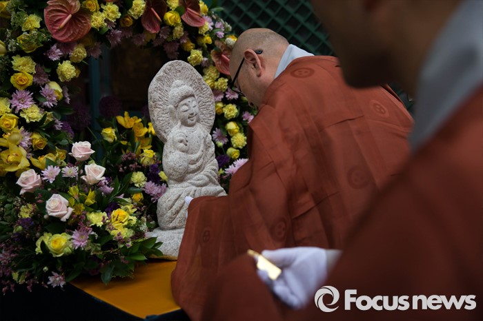 (서울=포커스뉴스) 21일 오전 서울 종로구 조계사에서 금박공양 의식이 열리고 있다.