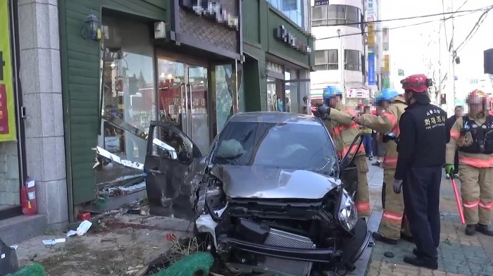 또 모닝 차량이 반파되고 한복 가게 정문 유리와 가로등 분전반이 파손되는 등 재산 피해도 발생했다.