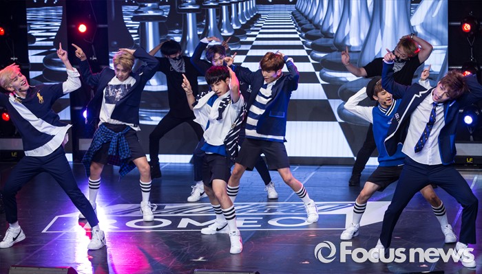 (서울=포커스뉴스) 24일 오후 서울 강남구 일지아트홀에서 아이돌 그룹 로미오의 미니앨범 'MIRO(미로)' 쇼케이스에 참여한 멤버들이 무대를 선보이고 있다.