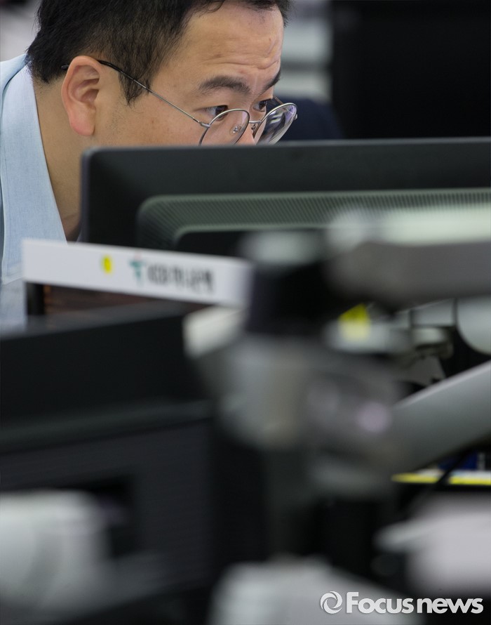 (서울=포커스뉴스) 영국의 유럽연합(EU) 탈퇴를 의미하는 '브렉시트'가 확정된 가운데 24일 오후 서울 중구 KEB 하나은행 명동 본점 딜링룸에서 딜러들이 업무를 보고 있다. 이날 코스피는 전날 대비 61.47p(3.09%) 내린 1,925.24, 코스닥은 32.36p(4.76%) 내린 647.16, 환율은 29.7원 오른 1,179.9원을 기록하며 장을 마감했다.