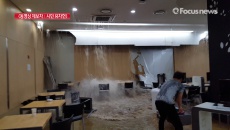 사진과 영상을 보면 지하층에는 물이 발목까지 잠길 정도로 들어찼고 학생들이 천장에서 갑자기 쏟아진 물을 피해 대피하고 있다.