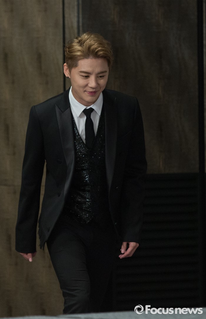 (서울=포커스뉴스) 11일 오후 서울 종로구 포시즌스호텔 서울에서 열린 뮤지컬 '도리안 그레이' 제작발표회에 참석한 배우 김준수가 포토타임을 위해 이동하고 있다.
