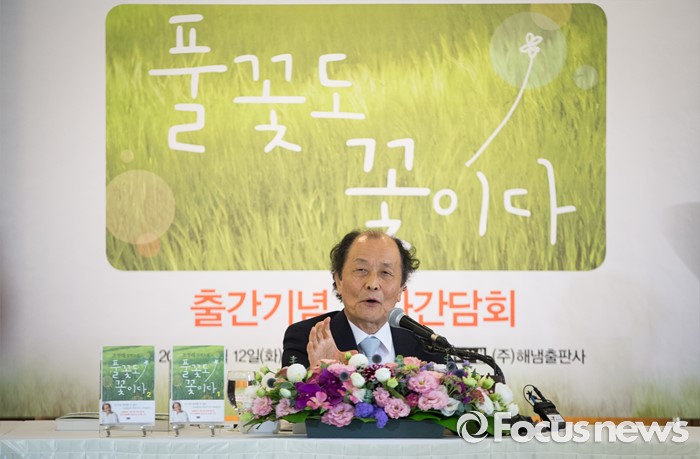(서울=포커스뉴스) 조정래 소설가가 12일 오전 서울 중구 한국프레스센터에서 '풀꽃도 꽃이다' 출간기념 기자간담회를 하고 있다.