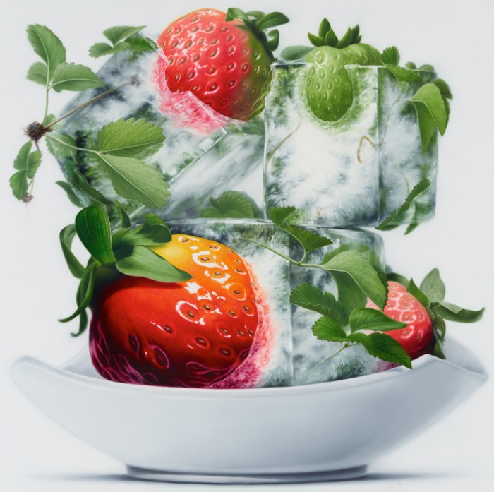 극사실주의 그림처럼 보이는 박성민 작가의 작품은 현실 속에 존재하지 않는 초현실주의 작품이다. 딱딱한 얼음 속에 생명감을 유지한 채 얼어있는 딸기는 현실 속에서 일어나지 않는 현상이다. 중력 탓에 딸기가 물 속에 가라앉거나 혹은 장기간 냉동 탓에 생명력을 잃기 마련이다.