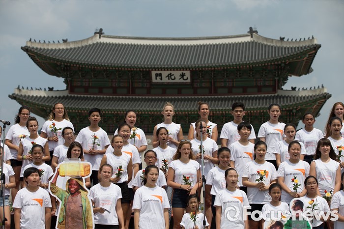 (서울=포커스뉴스) 8일 오전 서울 종로구 광화문광장에서 열린 '월드비전 2016세계어린이합창제' 런치콘서트에서 헝가리, 필리핀 어린이 합창단과 한국 월드비전 합창단이 노래를 부르고 있다. 올해로 6회를 맞은 '월드비전 2016 세계어린이합창제'는 'Song of Peace-평화의 노래'라는 주제로 8월 6일부터 11일까지 예술의 전당에서 열린다.