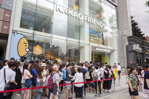 지난달 2일 개장 첫날에는 스토어 오픈 시간 이전부터 약 3000여명의 인파가 몰려 강남역 일대에 거대한 행렬을 만드는 등 카카오프렌즈에 대한 팬들의 뜨거운 사랑을 확인하는 계기가 됐다는 게 회사측 설명이다.