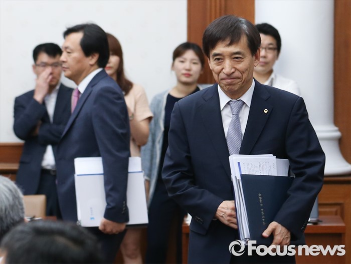 (서울=포커스뉴스) 이주열 한국은행 총재가 11일 오전 서울 중구 한국은행에서 열린 제15차 금융통화위원회에 참석하고 있다.