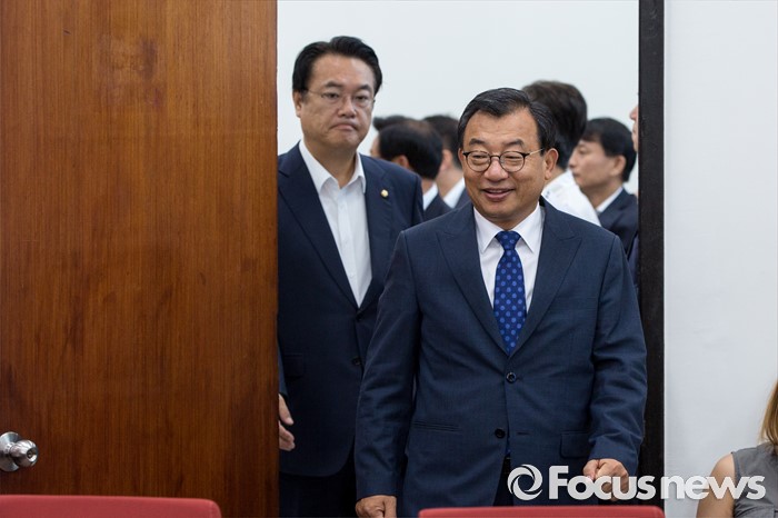 (서울=포커스뉴스) 이정현 새누리당 대표와 정진석 원내대표가 11일 오전 서울 여의도 국회에서 열린 최고위원회의에 참석하기 위해 회의실로 들어서고 있다. 이날 회의에서 대표와 원내대표를 비롯한 최고위원들의 모두발언 공개 없이 잠깐의 촬영시간만 주어진 뒤 비공개로 전환 했다.