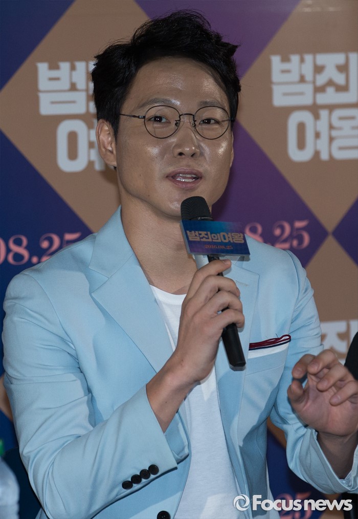 (서울=포커스뉴스) 11일 오후 서울 성동구 CGV 왕십리에서 열린 영화 '범죄의여왕' 언론시사회에 참석한 배우 허정도가 취재진 질문에 답변하고 있다.